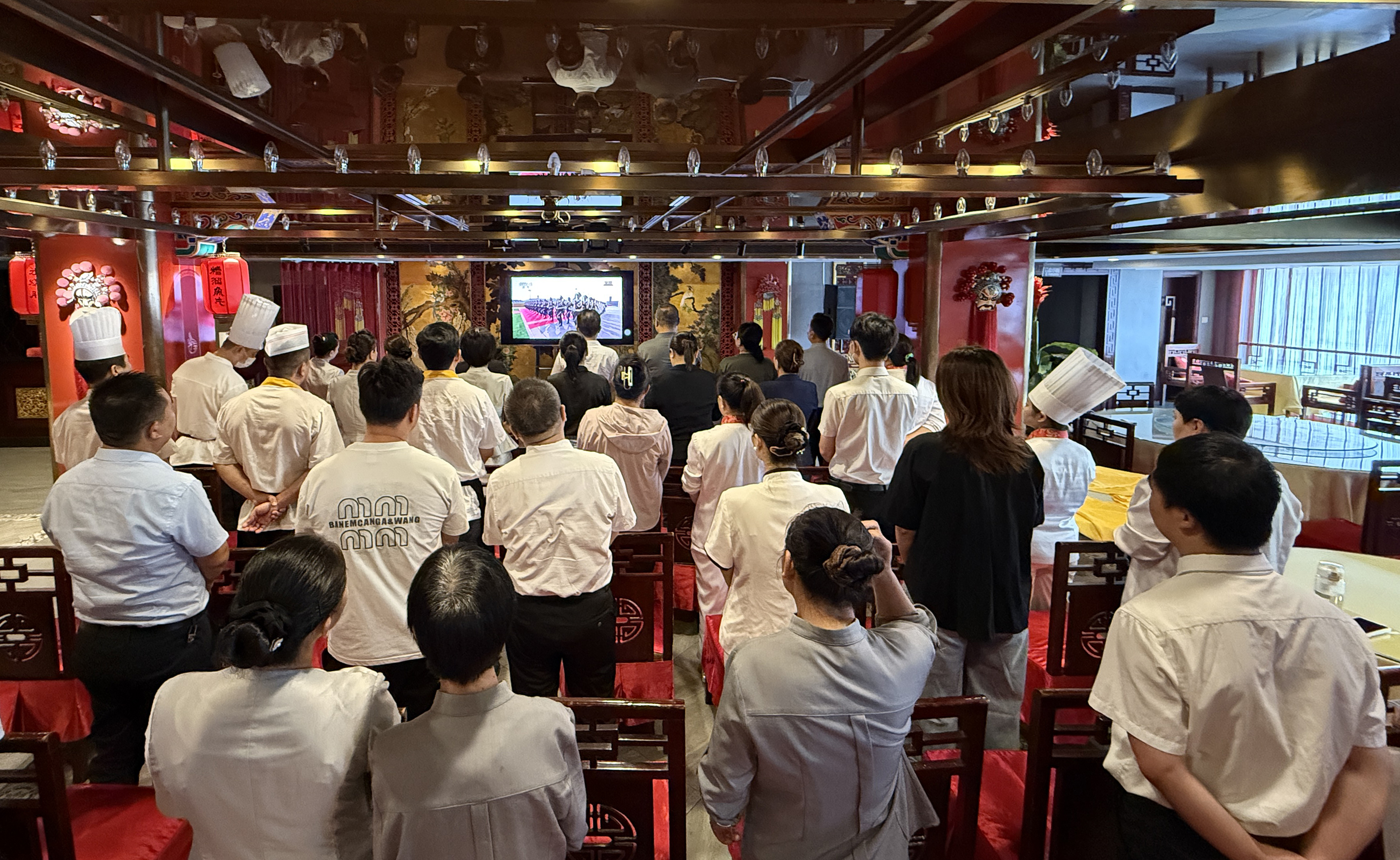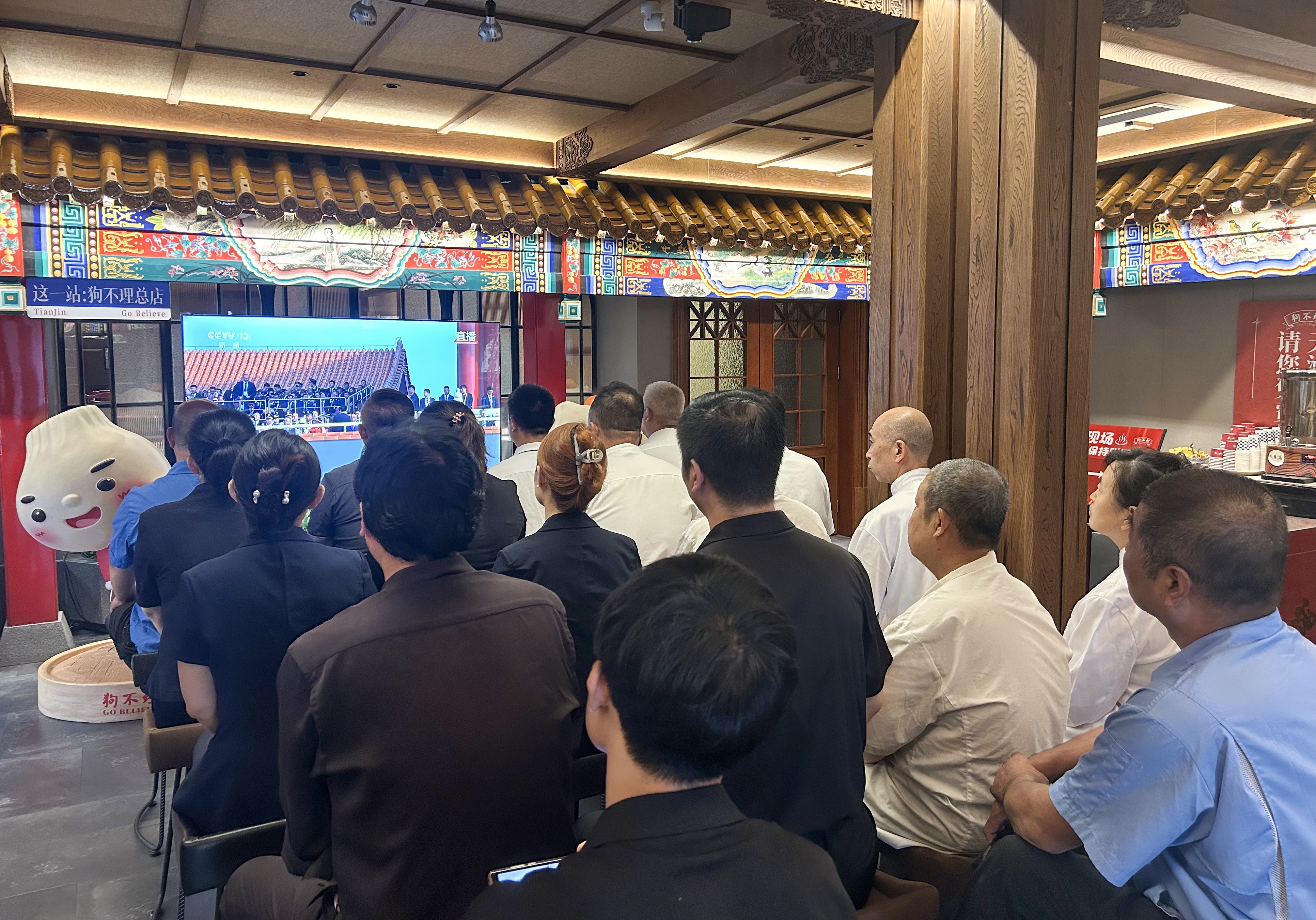 狗不理集團(tuán)黨委組織觀看紀(jì)念中國(guó)人民抗日戰(zhàn)爭(zhēng)暨世界反法西斯戰(zhàn)爭(zhēng)勝利80周年閱兵儀式直播